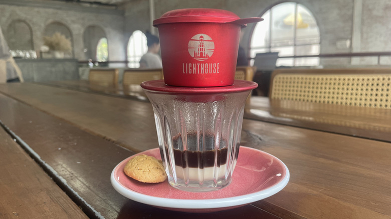 At the heart of all Vietnamese coffee drinks lies phin coffee — not exactly a drink, but a brewing method using a metal filter placed directly over the cup. If you truly want to replicate Vietnamese coffee drinks, you can purchase this Nguyen Coffee Supply Original Phin Filter in three different sizes, with the 4-ounce single-serving being the most traditional.
