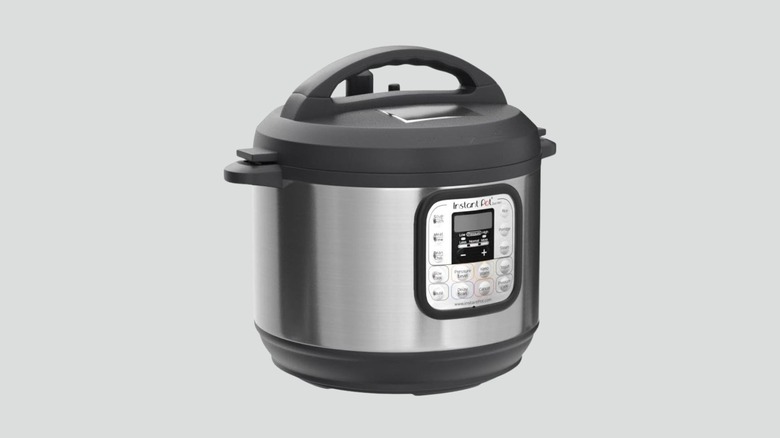Instant Pot offers several large electric pressure cookers, but theInstant Pot Duois a fairly small unit with a three-quart size and measurements of only 11.2 x 11.4 x 10 inches. While this might not be an appliance you wish to leave on your countertop constantly, it can easily be stored on a pantry shelf or in a narrow cabinet.