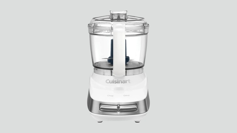 Its 4-cup label indicates it can hold up to four cups of food simultaneously. This compact food processor has two separate functions: Chop and Grind, and switching between them is straightforward using the easy-to-use paddle controls.