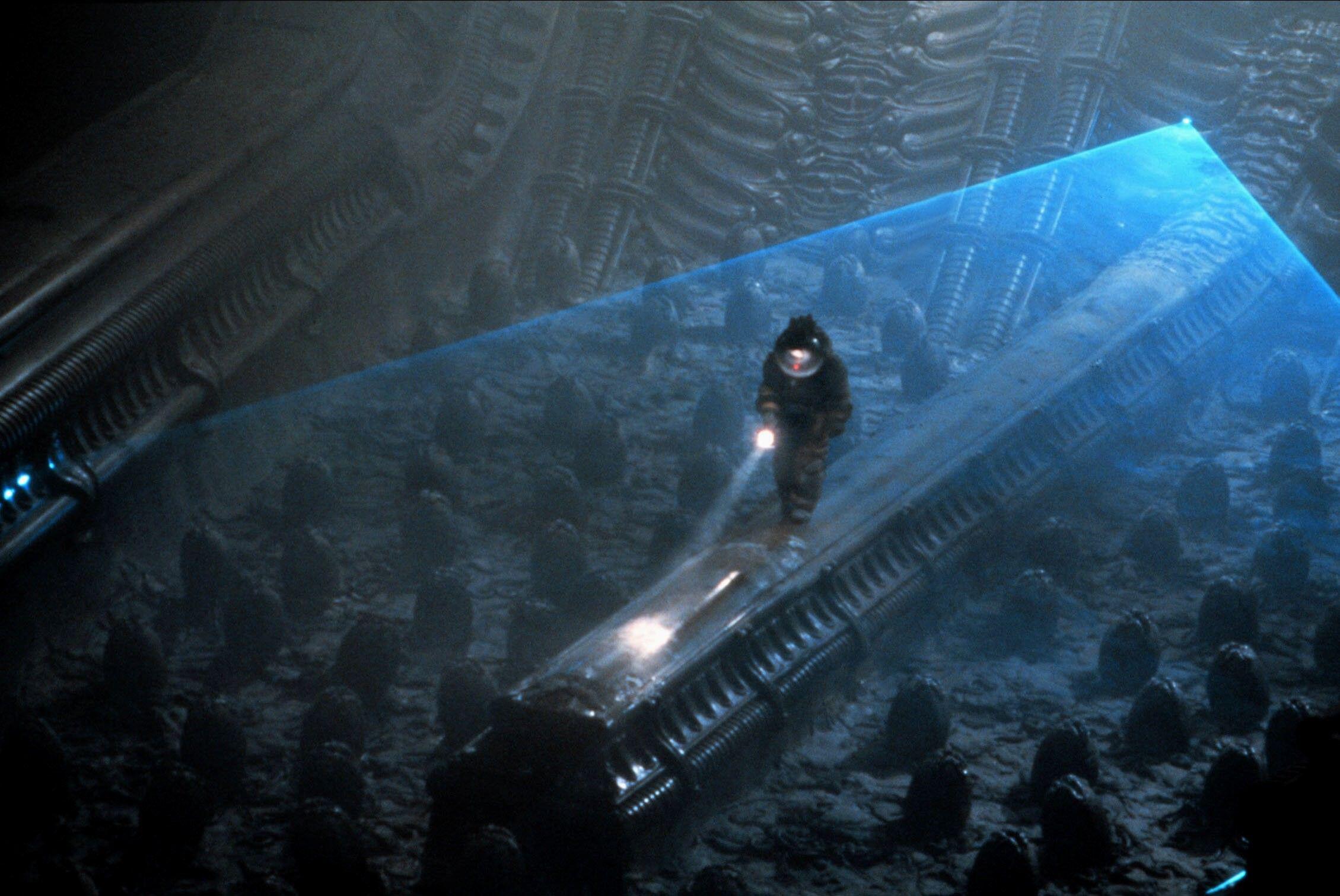 The blue mist: The clutch of eggs on the Maginot are bathed in an eerie blue light. Long term Alien fans will know that this strange membrane covered the eggs in the crashed ship on LV-426. It was also seen again in Alien: Romulus. The franchise has never officially explained what it is, or how it is created, though it seems to be a membrane of some kind that breaks when someone interrupts it – note how the alien only comes for Joe after he has breached it.