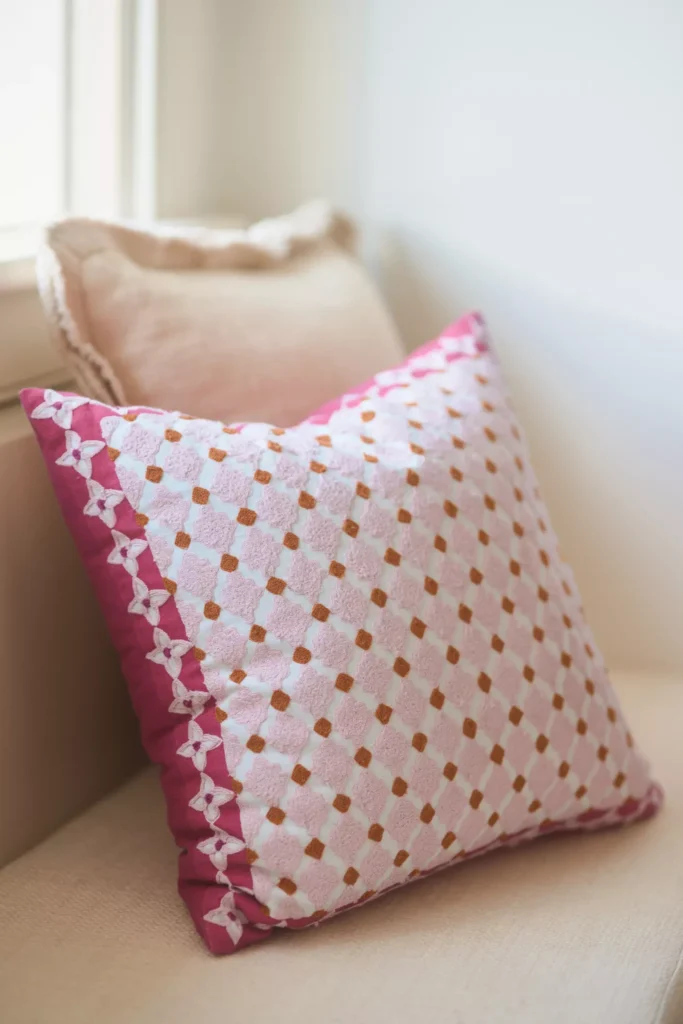 This pillow, made of linen and cotton with intricate embroidery, adds a geometric touch to any space. It’s soft, elegant, and available for just $32 during the sale.