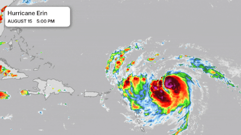 Erin did not stay at Category 5 for very long. Soon after reaching its peak strength, the storm changed in structure and gradually lost power.