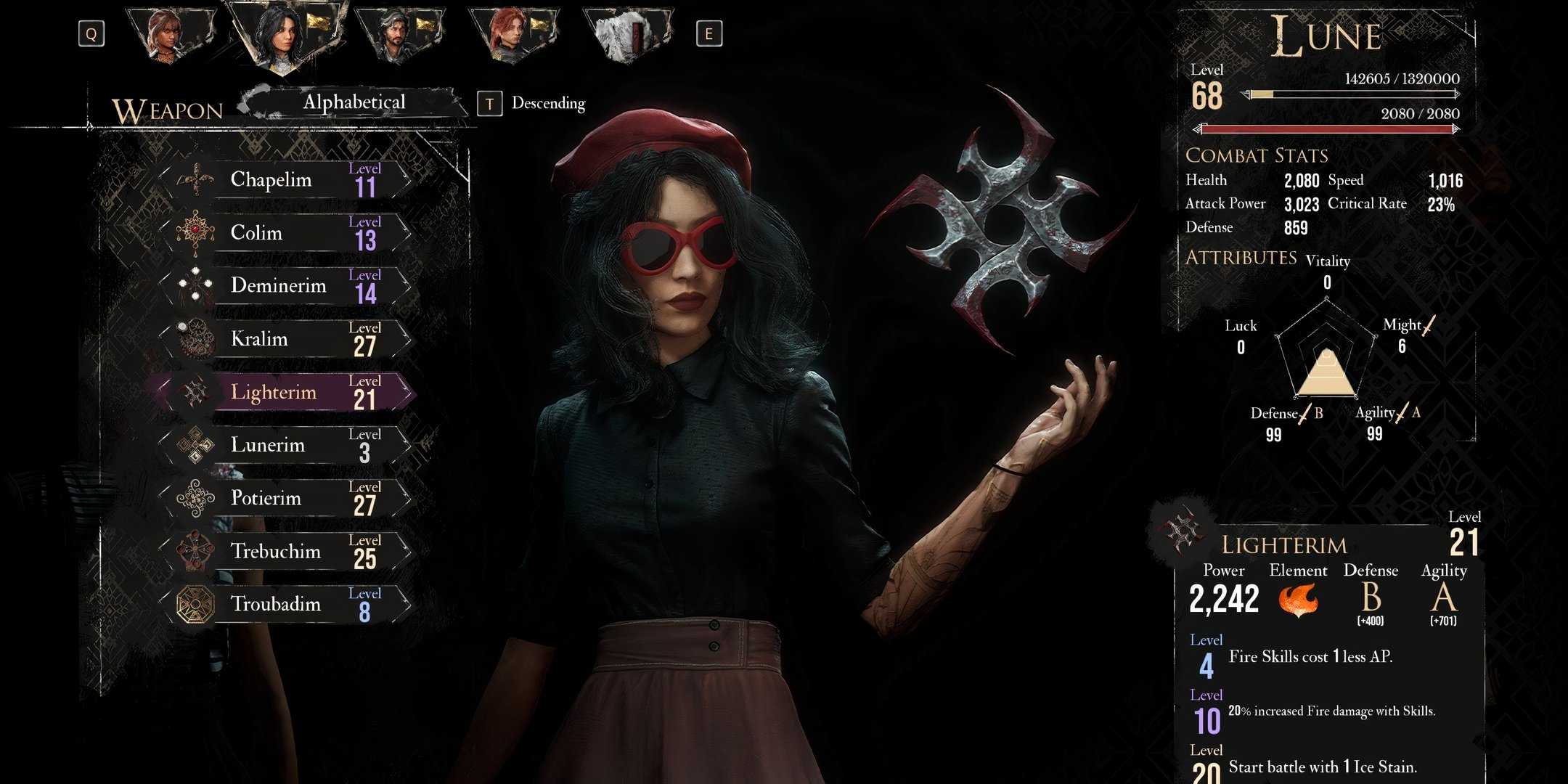 Following that, Agility serves as Lighterim’s secondary scaling attribute, and having high Agility will put you in a favorable position, as it will boost Lighterim’s weapon damage and give Lune more turns during combat.