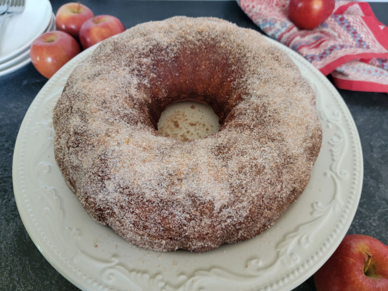We used a cake mix to cut down on the time making this Apple Cider Donut Cake. You can also make it from scratch if you prefer.