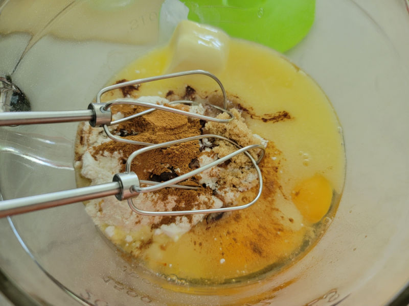 Step 1 – Mix cake mix, apple cider, melted butter, eggs, cinnamon, brown sugar, and vanilla together. We suggest using a hand mixer to make it easy to combine the mixture.