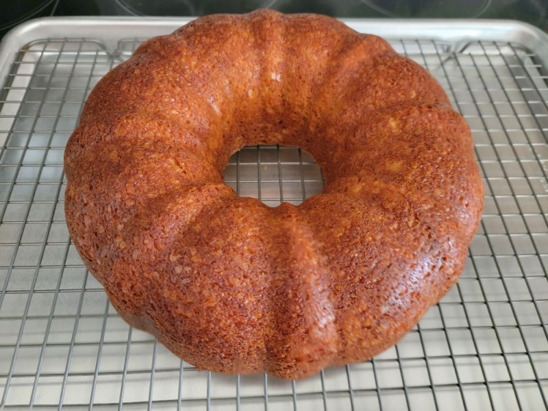 Step 2 – Remove the cake from the oven and use a toothpick or cake tester to make sure it comes out clean in the center. Let the cake rest for 20 minutes before turning it onto a cooling rack.