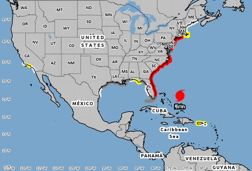 Erin’s strong and remarkably broad wind field will lead to a historic hurricane event in the western Atlantic, with individual waves exceeding 100 feet offshore in the coming days,” Lowry stated on Wednesday. “Yesterday, a buoy located approximately 100 miles east of Erin’s path, northeast of the Bahamas, measured wave heights of up to 40 feet.