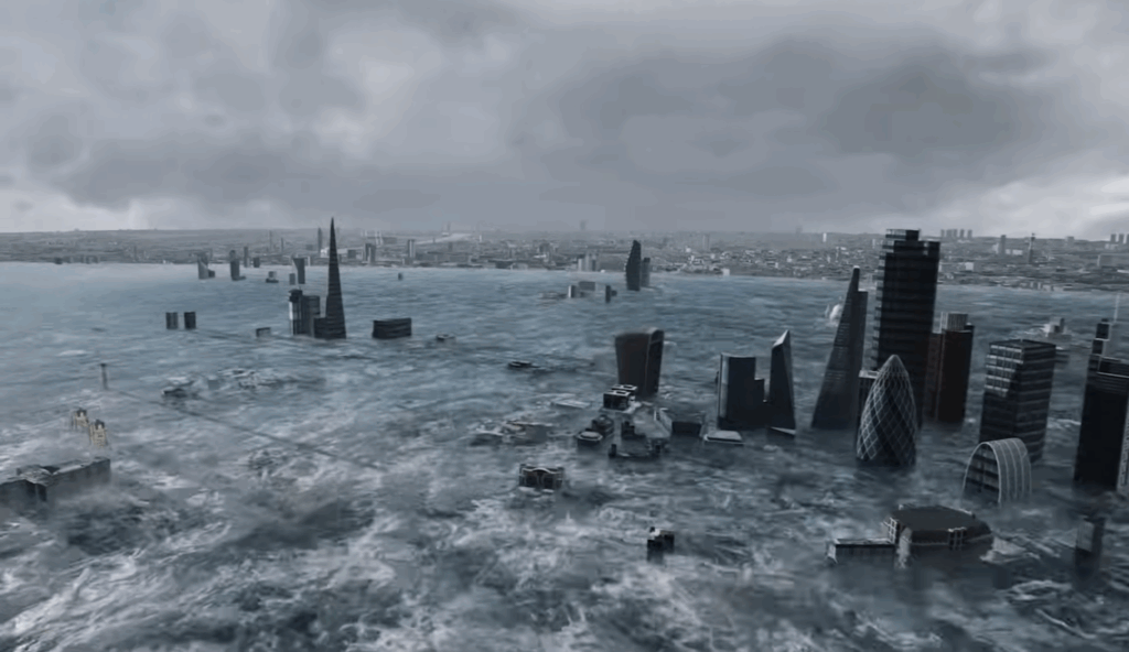 The emergency would start with intense heatwaves, destructive wildfires, and severe storms. These situations would cause the quick melting of Earth’s ice. Even though current ice covers just 10% of the land, it has the potential to increase sea levels by 70 meters (230 feet) if it were to melt entirely. Cities along the coast, including New York, Miami, Tokyo, Lagos, and Rio de Janeiro, would be submerged. Well-known places such as London, Paris, Venice, the Maldives, and the Bahamas would be completely lost.