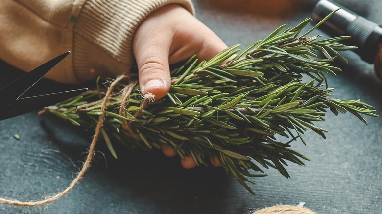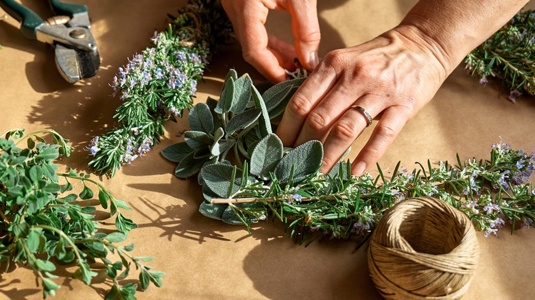 You can obtain the herbs needed for this project directly from your garden. Strong herbs such as rosemary, sage, thyme, and parsley provide an attractive look and dry effectively when suspended. Delicate herbs like basil, oregano, and mint are not recommended, as they may grow mold if they do not dry quickly enough.