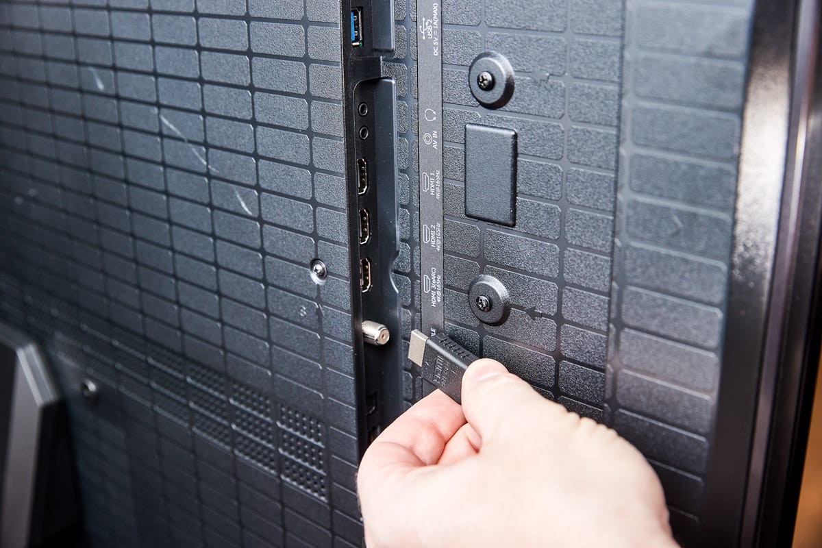 Unlike with other home theater equipment, there is a specific HDMI port designated for your soundbar on the back of your television. All newer TVs and older models from the late 2010s should include at least one HDMI port labeled “ARC” (Audio Return Channel) or “eARC” (enhanced Audio Return Channel), which feature an additional protocol designed for connecting audio devices. Utilizing this port will ensure a more stable HDMI connection with the best possible quality between your TV and soundbar. Additionally, using an eARC connection enables your soundbar to support audio formats such as Dolby Atmos, offering virtual surround sound and other advanced features.