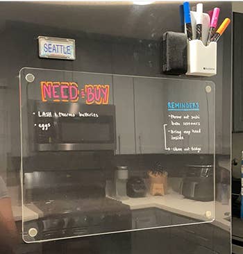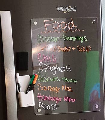 33. A clear magnetic refrigerator whiteboardThat will stick right on your fridge. It’s a bit more visually appealing as a reminder compared to a bunch of sticky notes. Go ahead and write down reminders to eat the leftovers that are about to spoil!