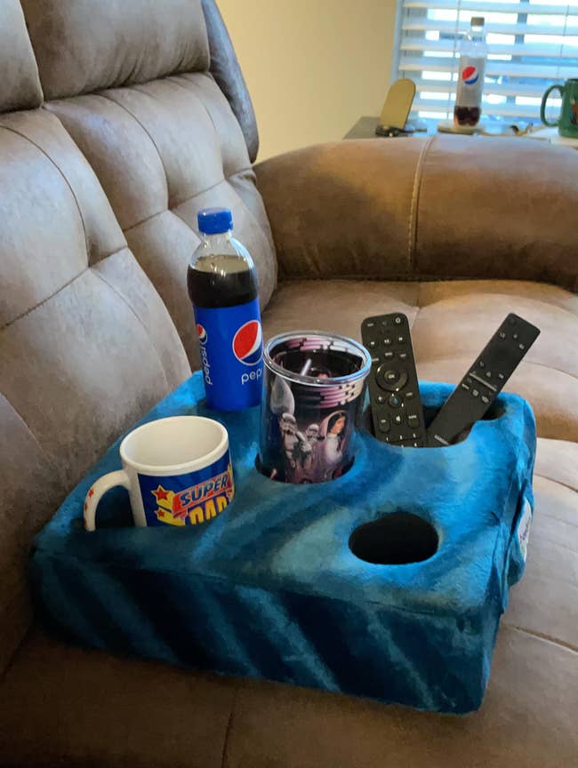“This item is amazing! I’m on maternity leave at home with my newborn and spend most of my time on the couch with a sleeping baby. This product helps me keep my drinks, remote, and other items within reach, even with energetic dogs running around. It’s a bit pricier than I would have preferred, but it functions well and I really like it, so it’s worth the money!” —Amber