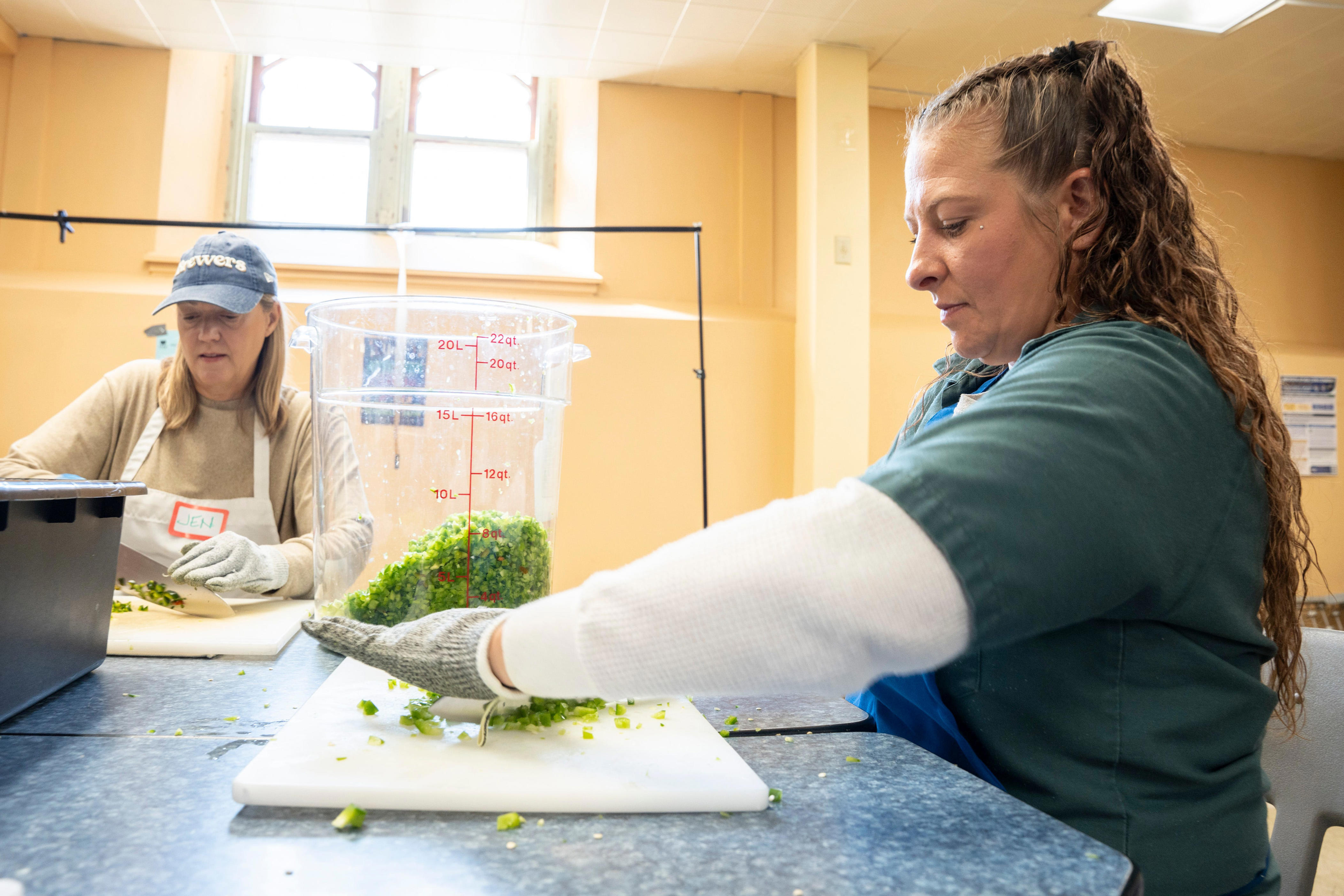 Avner also mentioned that several women who were incarcerated and participated in the meal program have returned to volunteer after their release. Some entered the food service industry, while others secured jobs in different areas, but they often recall the chop shop team and enjoy staying in touch.