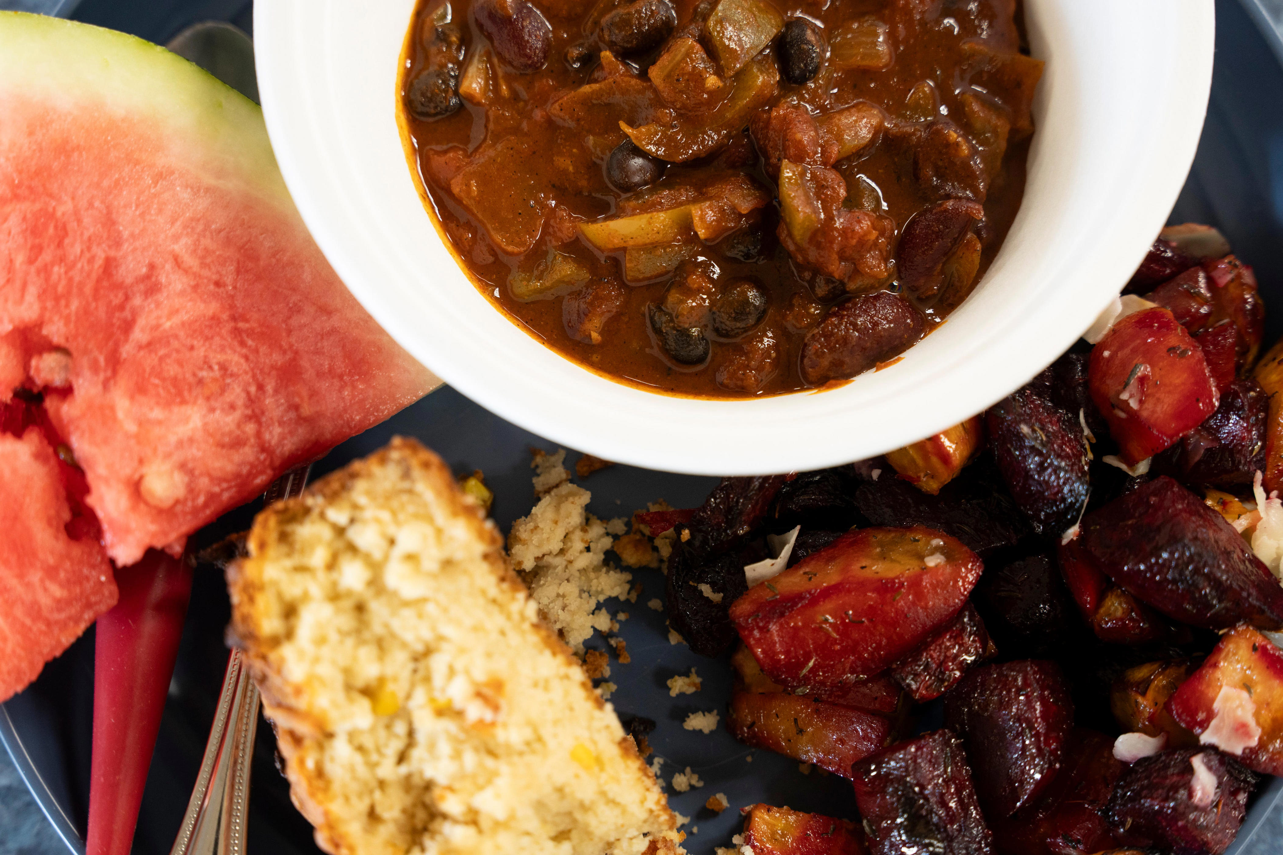 Vegetarian chili was featured on the menu during Grambsch and Bogues’ final volunteer shift in September. The two women worked with a group of approximately 20 volunteers to cook meals for 400 to 500 people.