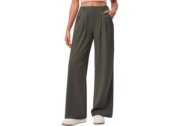 This outfit will easily take me from day to night—which is important since going home to change between activities is rarely possible. These pants have an elevated look while still being comfortable enough for long days, thanks to the elastic waistband and stretchy fabric. I’d pair them with a statement belt and a sleek black bodysuit for a happy hour look, although if you add a blazer, this look can be worn on business trips, too..