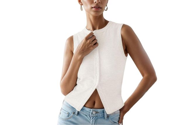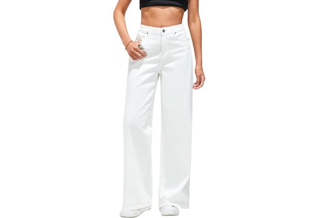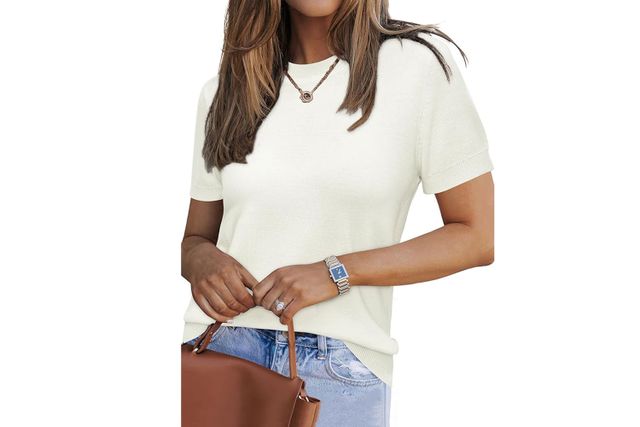 I love the tomboyish, slouchy look of wide-leg jeans, but if I want to try a more refined take on the style, I opt for white jeans like this pair from Lookbookstore. Reviewers rave about their stretchy, comfortable fabric and love that they pair well with boots, sneakers, and heels. As we inch toward fall, I’d pair these crisp jeans with a simple short-sleeve sweater—and this $32 option is highly rated.