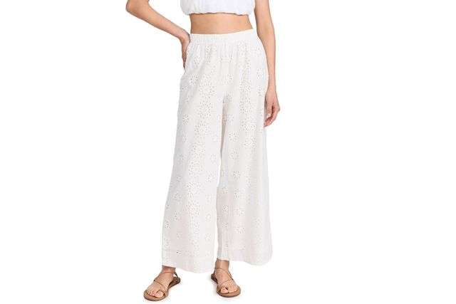 This look just screams “Sunday morning in the city,” which usually means bottomless brunch. The feminine eyelet details remind me of the effortlessly elegant women I spot on shopping trips, bagel runs, and walks through Central Park. I’m loving these eyelet pants that are ideal for warm weather, and their elastic waistband ensures they’ll be comfy all day long. Right now, I’d wear them with a delicate embroidered tank, and when the weather gets cooler, I’d swap that with a simple sweater.