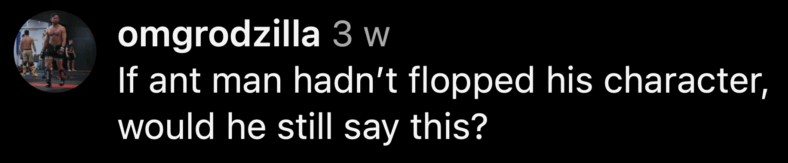 Instagram user @omgrodzilla shared the same view, asking further, “If Ant-Man hadn’t failed in his role, would he still say this?”