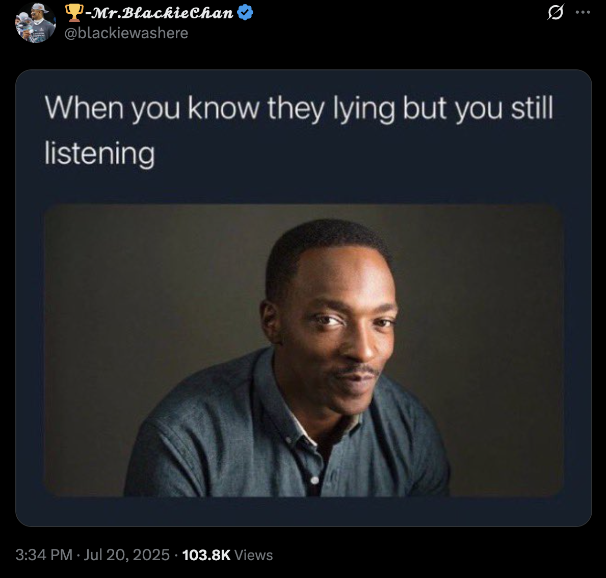 Others, like X user @blackiewashere, took it even further by launching a series of memes to expose Feige’s statements as complete falsehoods, including an image ofCaptain America: Brave New WorldStar Anthony Mackie with a caption that said, “When you know they’re lying but you’re still listening.”