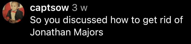 “So you talked about ways to remove Jonathan Majors,” also criticized @captsow.