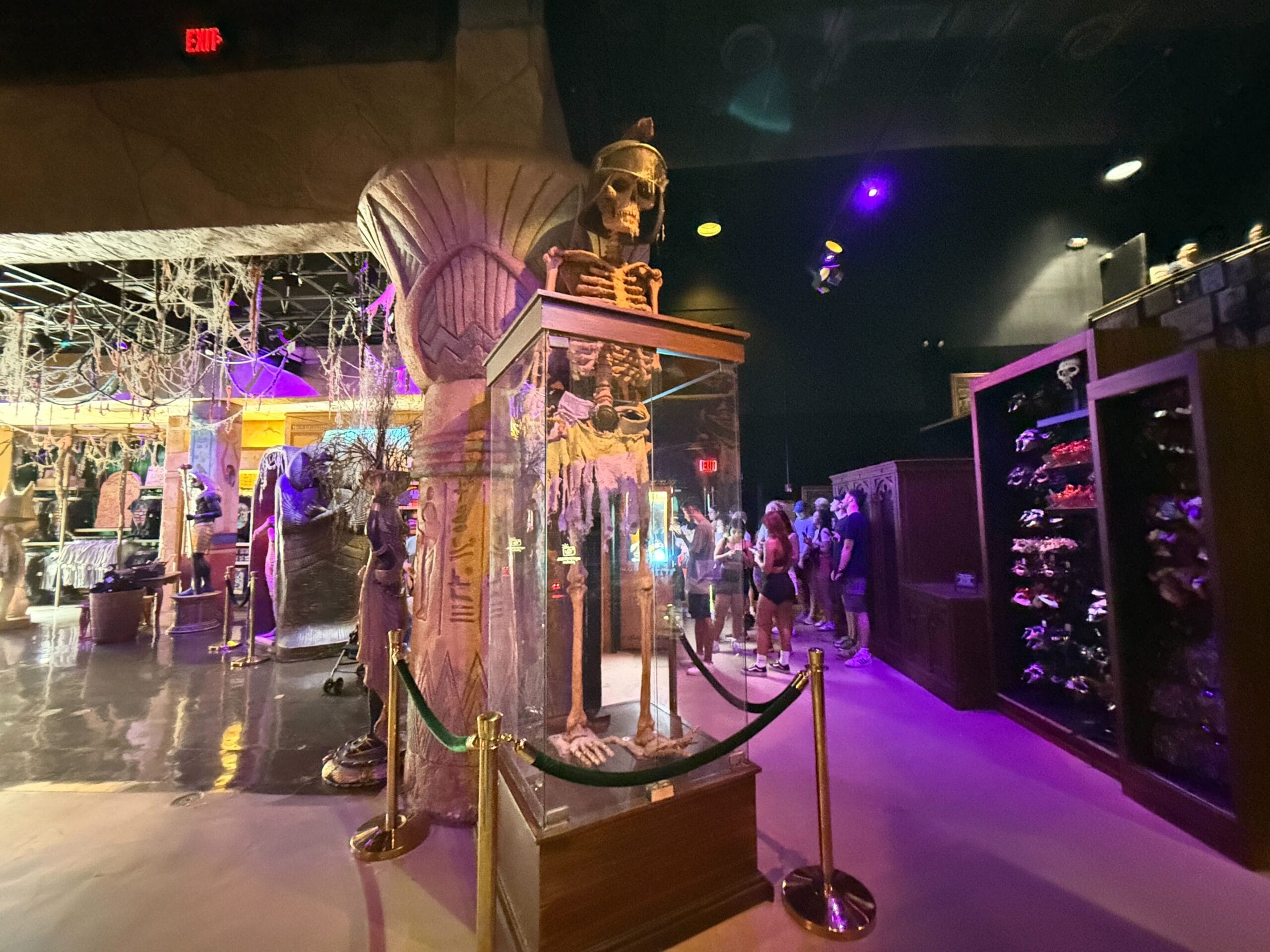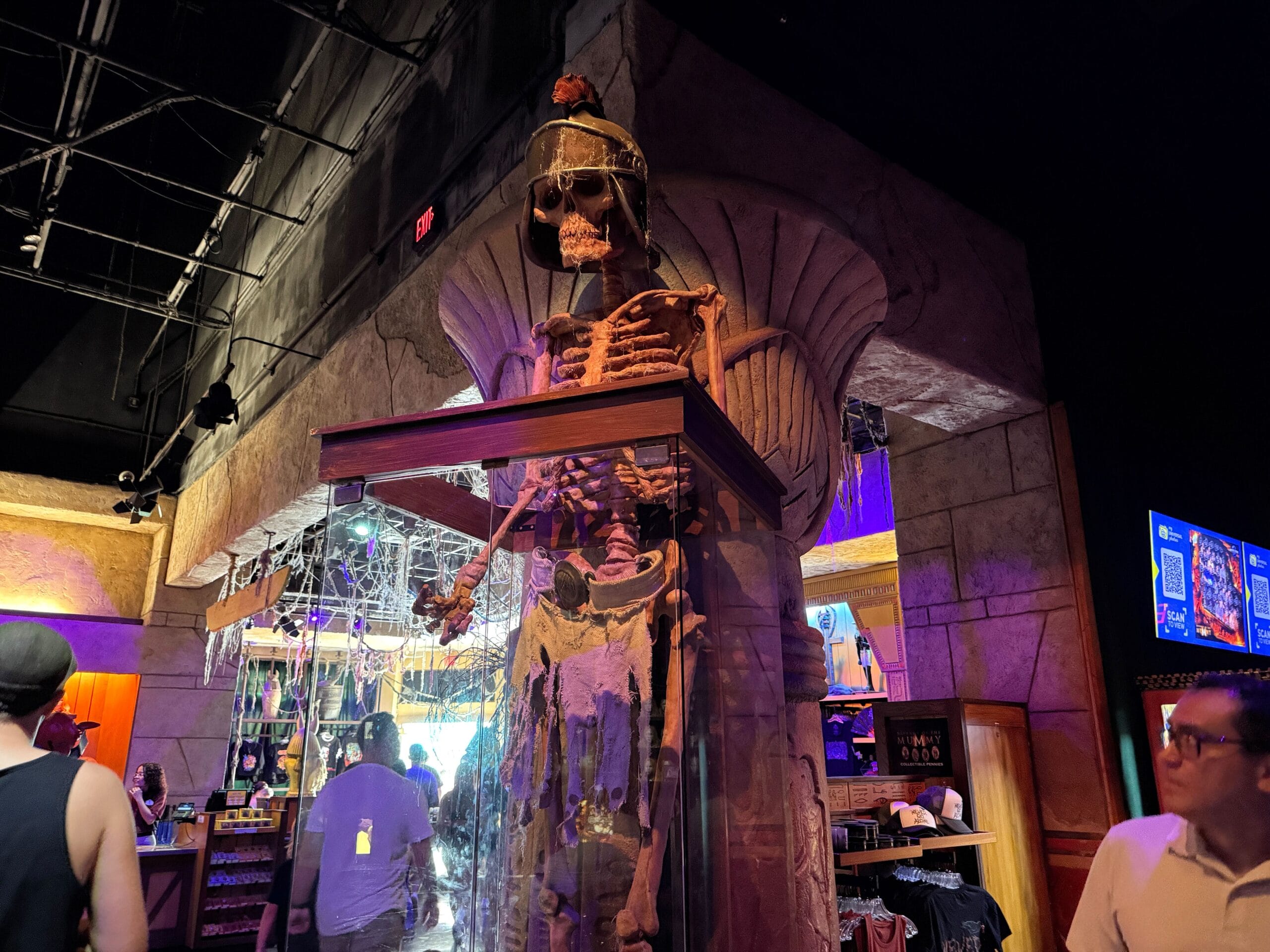 New items inside Sahara Traders, the event’s Tribute Store, feature this tall skeleton. It is partially located within a glass display case that is obstructed by barriers.