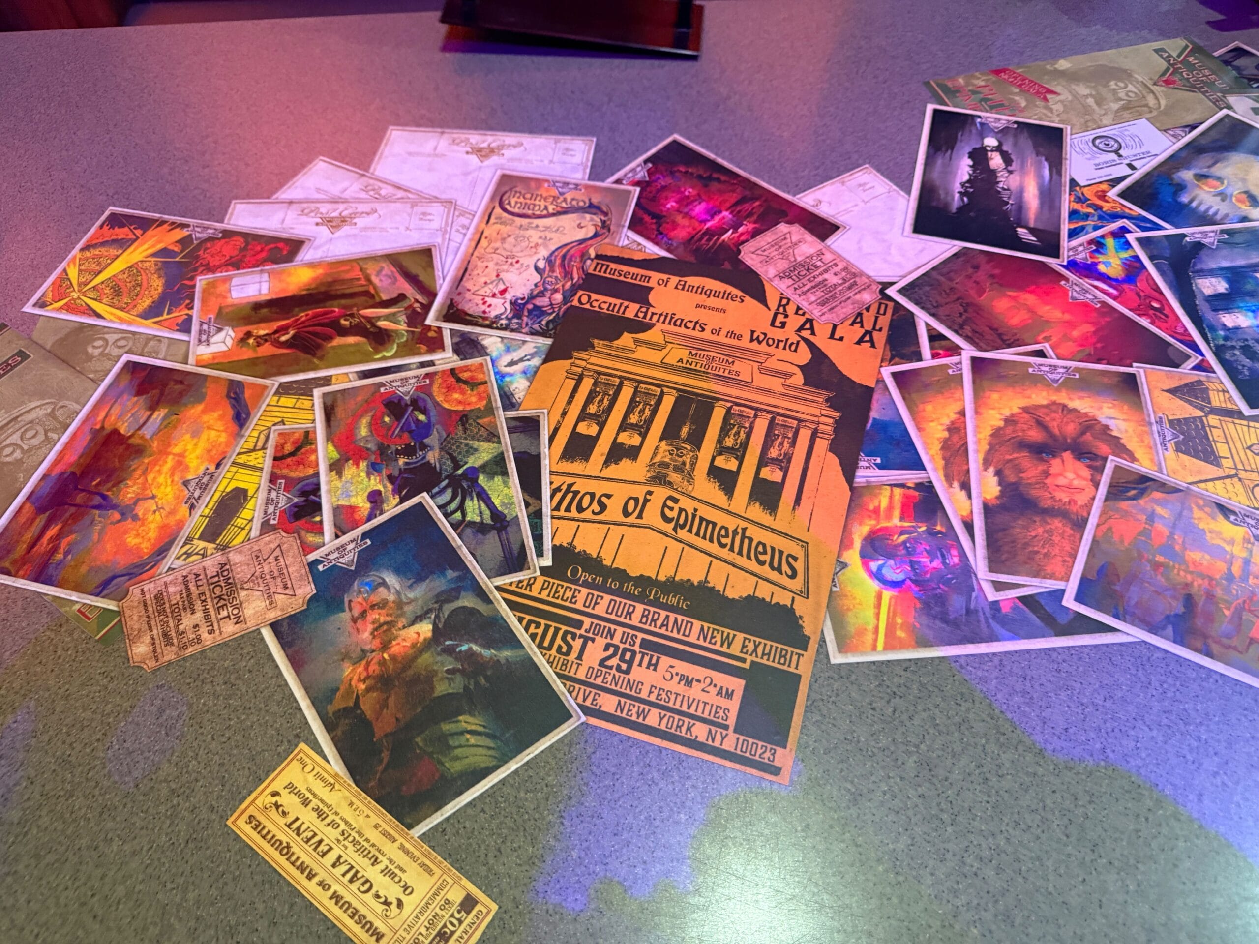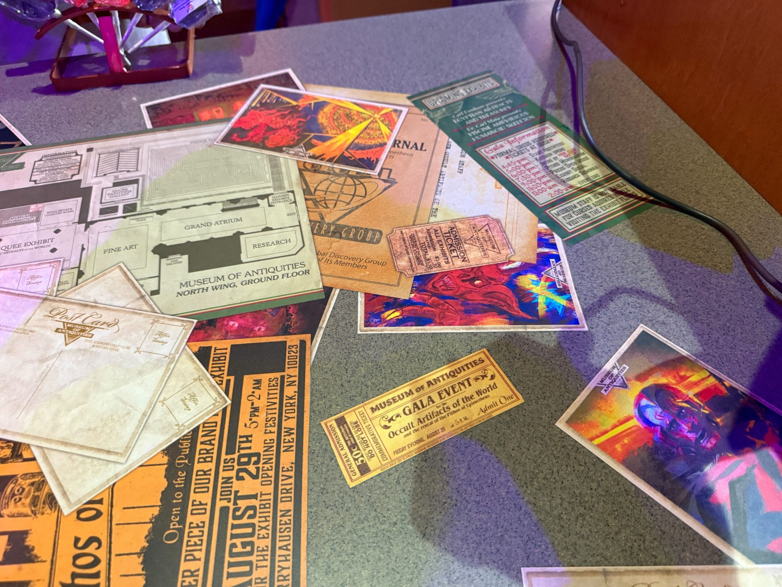 The checkout counter now features new decals that look like postcards, flyers, brochures, and other materials from the museum. The postcards display artistic representations of ancient scenes, people, and objects. Some may seem familiar — keep an eye out forPoseidon and his long-standing adversary, Lord Darkenon.