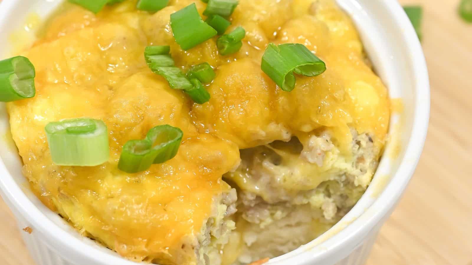 Soft biscuits, eggs, and sausage are combined in this morning casserole. It’s a cozy, filling choice that adds a special touch to mornings. Ideal for weekends or when entertaining visitors.