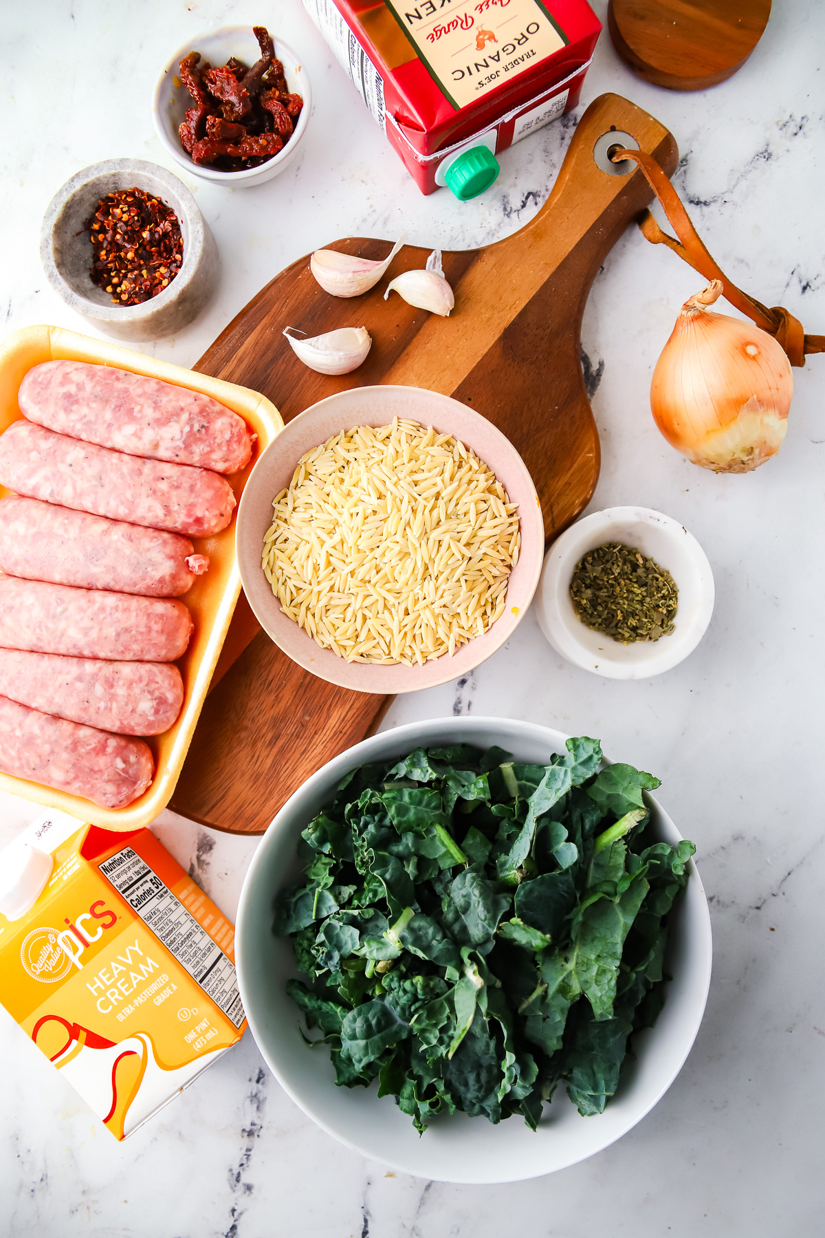 One-pot orzo dish with sausage and kale Ingredients + substitutions