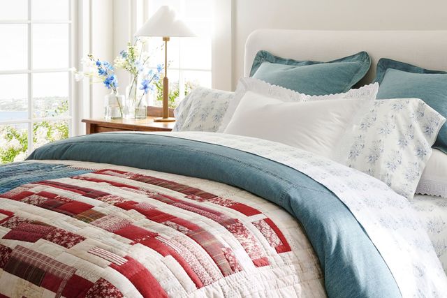 Pottery Barn is certainly one of the top spots to purchase bedding, particularly for those who enjoy lightweight quilts. Each of these bedding selections is soft and breathable, perfect for summer, but can also be easily adapted for use in fall and winter. Some popular options include the festiveAmericana Flag Quilt, the Hawthorn Striped Duvet Cover, and the Regan Handcrafted Reversible Quilt—all of which cost under $175. And if you’re looking to spend even less, theDreamy Handwoven Fringe Throwis currently under $65.