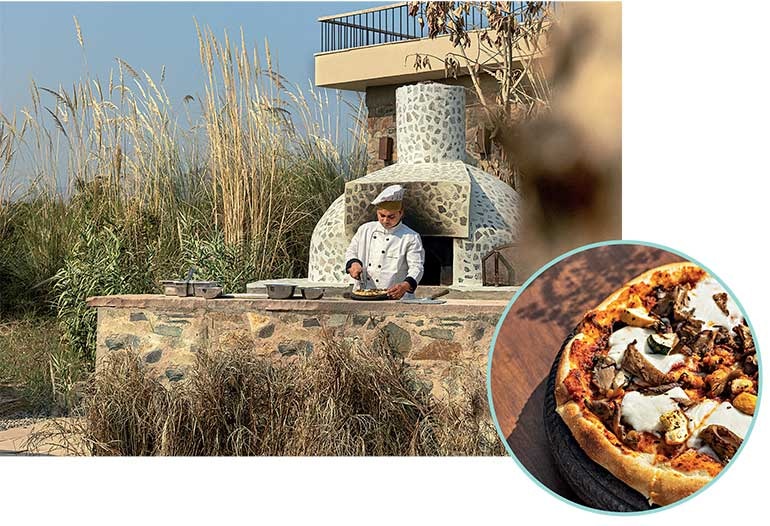 Brunch at the Lodge features fruit, homemade bread, light omelettes, and quality coffee. The menu is varied. The gazpacho and Caprese salad are highlighted by the taste of freshly harvested tomatoes. For dinner, the Rajasthani offerings include garlic-fried chaulai, a type of seasonal vegetable. The service is attentive, sometimes overly so, but the younger staff will likely realize that not all guests desire constant assistance. Or that not everyone expects a towel used for drying hands to be immediately replaced. Their intentions are good, but this approach conflicts with the Lodge’s goal of promoting an environmentally friendly atmosphere.