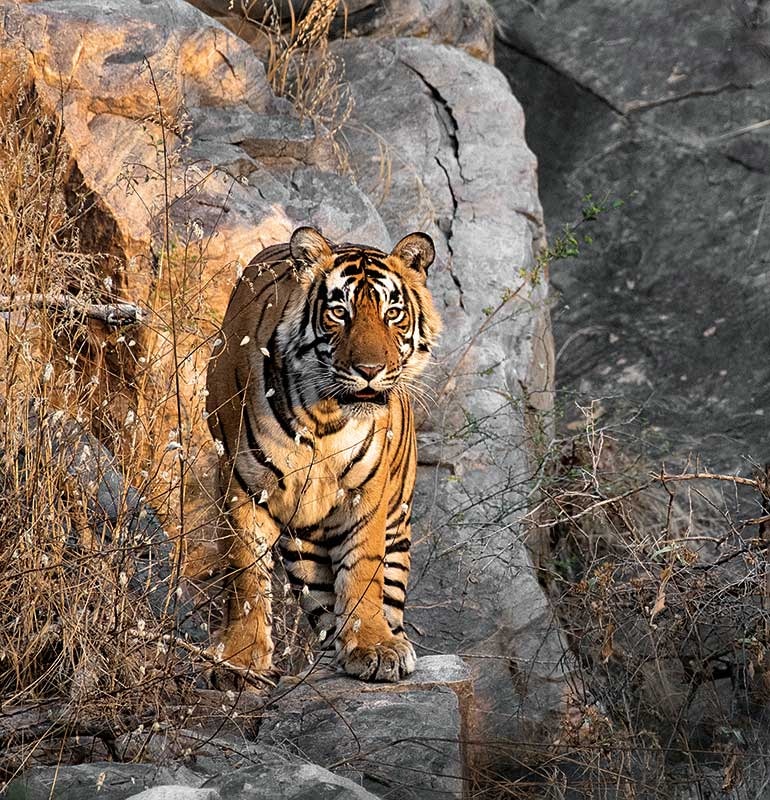 It is all very remarkable. My mind is filled with speculation, but the Archaeological Survey of India, which safeguards the temples, has neglected to offer any details for visitors. Later, I learn from an art history friend that these temples were constructed over a thousand years ago when this area was part of Paranagar, a principality under the Pratihara dynasty. Within a century or so, the community that worshipped and took care of them disappeared. We may never find out why. As we drink tea and eat biscuits on worn steps overlooking an old pond, I am reminded of how much more there is to admire if one looks beyond tigers at the natural and cultural environment they are part of. If it hadn’t been for the closed Tiger Reserve, I might have never come across this hidden gem.