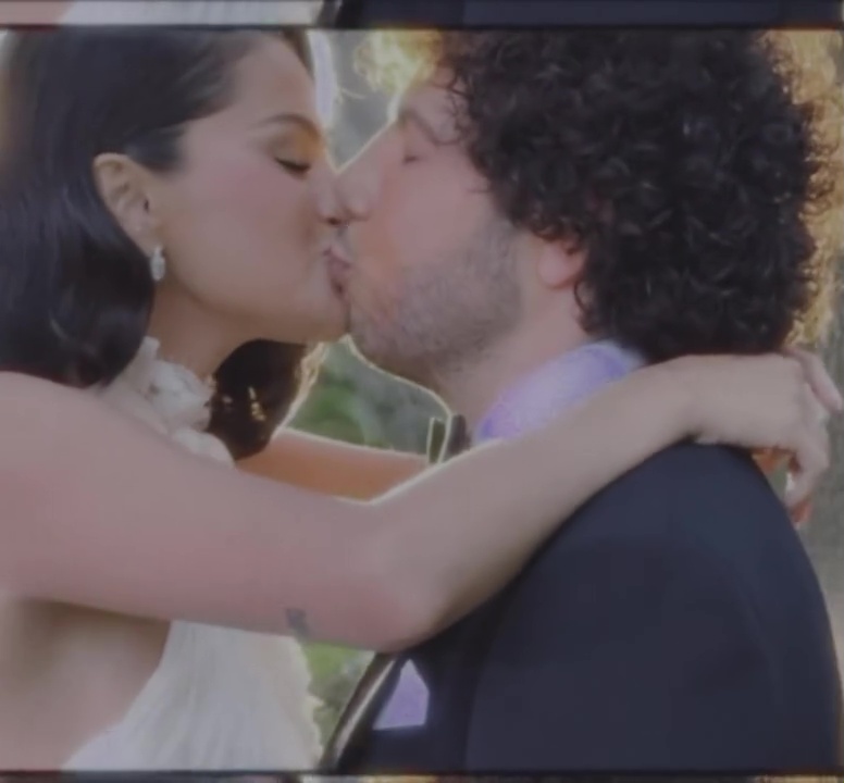 The images and footage captured the newlywed couple hugging, clasping hands, and savoring the occasion. Some detailed shots highlighted Gomez’s bouquet of lily of the valley and her wedding rings.