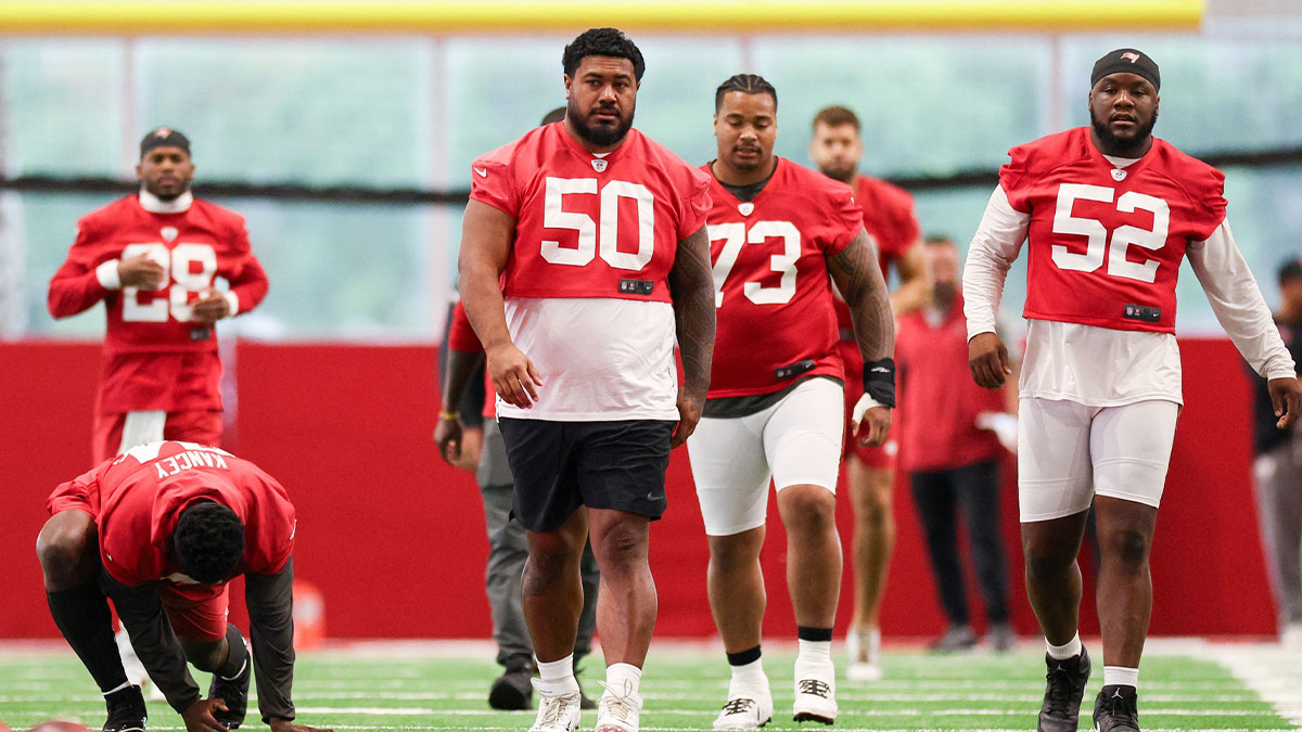 Tristan Wirfs, Ben Bredeson, Graham Barton, Luke Goedeke, Cody Mauch, Mike Jordan, Charlie Heck, Jake Majors, Elijah Klein, Luke Haggard