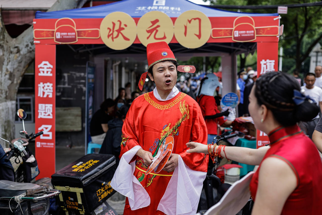 For two days every year in June, China comes to a standstill. Unusual sights abound: Men put on qipaos, traditional dresses typically worn by women, as a symbol of luck; police stand on street corners, silencing drivers to ensure minimal disturbance; temples overflow with relatives sending out final prayers; crowds, unusually quiet, gather in hushed vigils outside thousands of schools. State media zero in on an event affecting 10 million students and their many family members: the gaokao, China’s national college entrance exam.