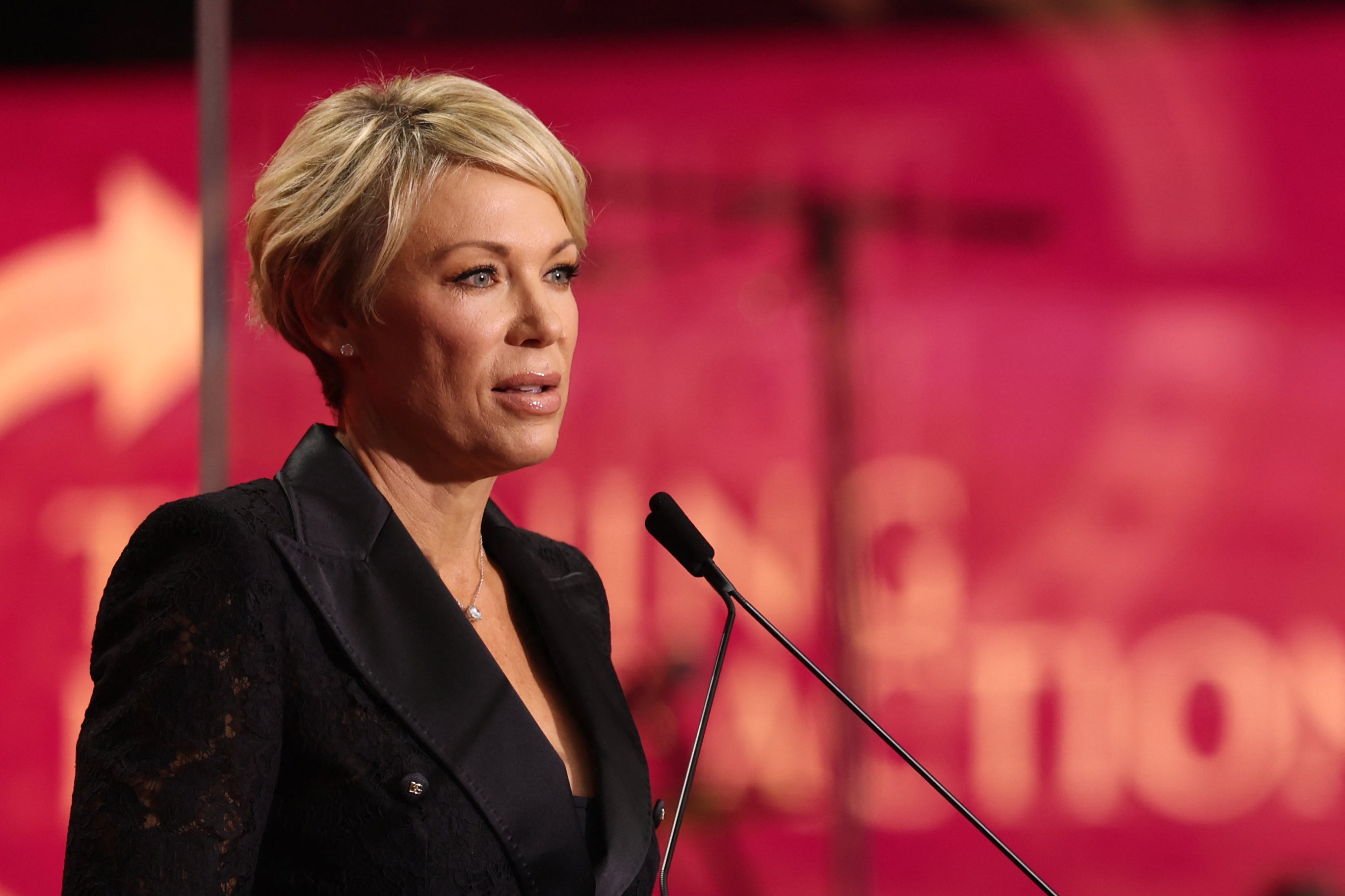 President Donald Trump was joined on stage by Erika Kirk as he finished his speech, honoring her late husband.