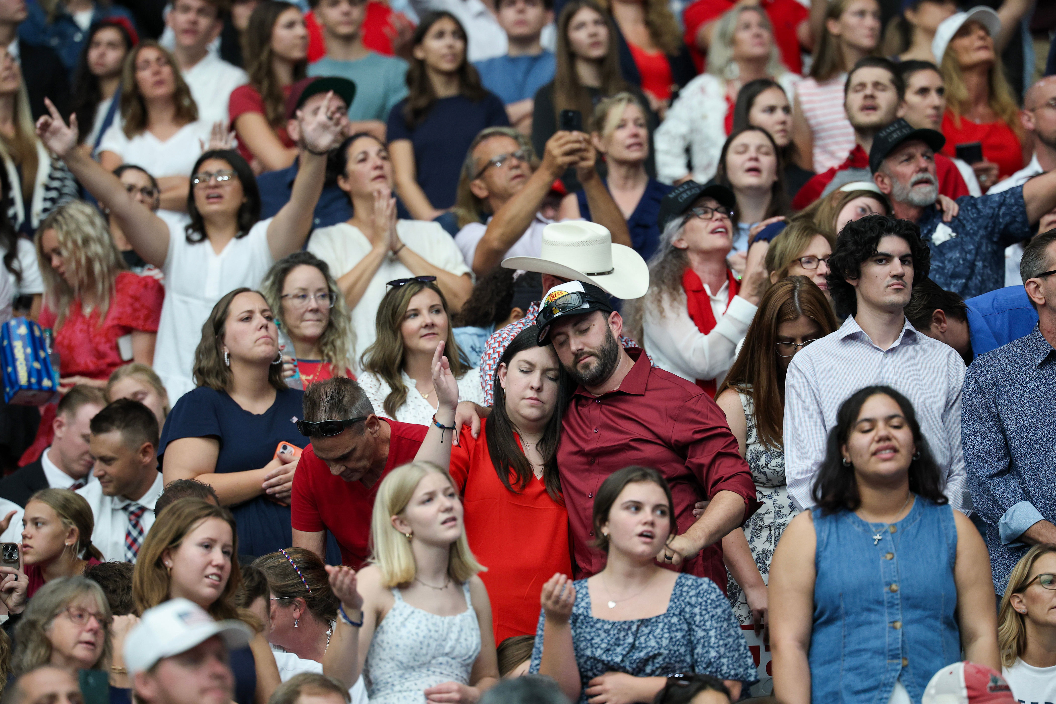 As the video, which urged listeners to “take up your cross and return to the battle,” concluded, the audience erupted in applause. A few moments later, they stood up for a standing ovation.