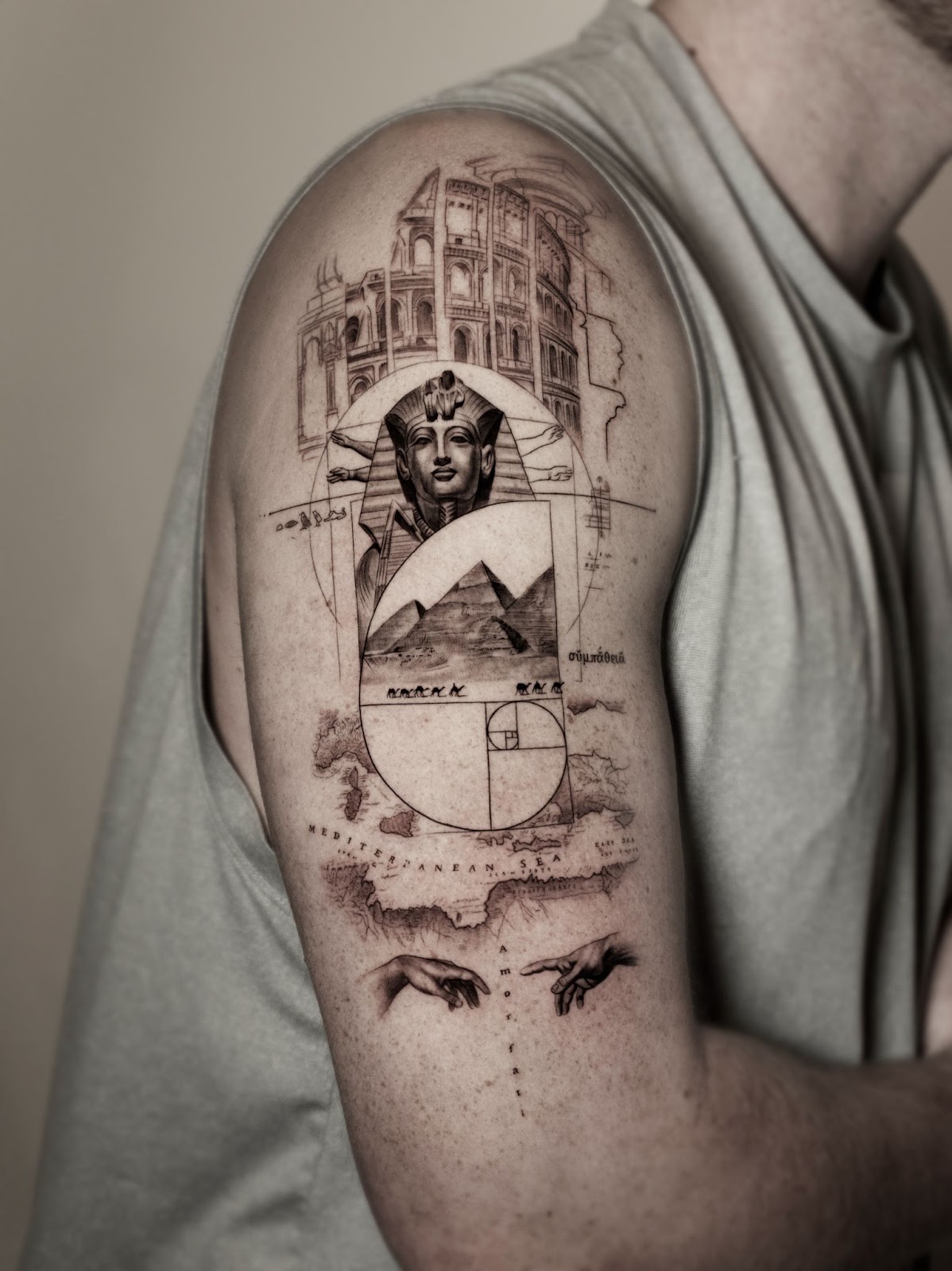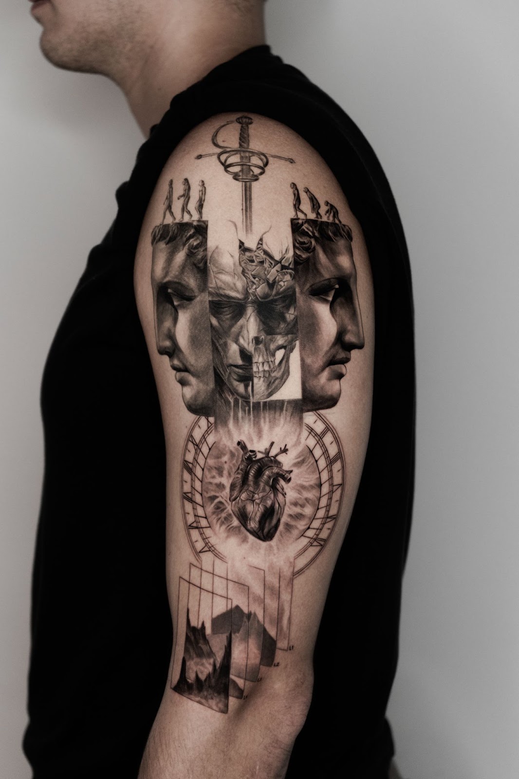 What sets Taeseok Park apart is his mastery in weaving diverse elements into a cohesive and flowing narrative on the body. He meticulously translates complex personal histories into intricate designs that appear to grow organically from the client’s form. “I’m known for translating a client’s life story into a design that flows naturally with the body’s shape,” Park states. “Every element in the tattoo — whether it’s a portrait, statue, natural form, or object — is drawn with precision and intention. These are the areas where I truly shine, and I take pride in balancing technical skill with meaningful storytelling.”